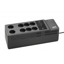 APC Back-UPS 650VA 230V 1 USB charging port - (Offline-) USV. Topologie UPS: Veille, capacité de la puissance de sortie: 650 VA, Puissance de sortie: 400 W. Types de sortie AC: Type F, Prise mâle: Type F, Nombre de prises en sortie: 8 sortie(s) CA. Format: Compact, Couleur du produit: Noir